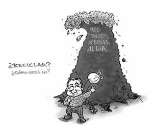 This cartoon (El Dia, July, 31 2011) shows the problem we face daily in Santa Cruz, a huge tide of trash is about to cover us. How to take care (properly) the 900 tons of garbage in this city, is a recurring problem. Speaking of recycling or reusing, they are still in their primary and basic attempts. Most of the people do not know how to dispose of their garbage. People dump their trash in the street, hoping the garbage trucks will pick it. People know when those cars drive by their houses but still, they just take their garbage any time and in any way. Scavengers and dogs scatter the trash and it is unhealthy and disgusting.