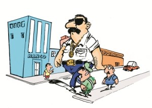 This article from El Dia, recalls all the negative and violent activities of the narcotraffick in Bolivia. Not only is violence presents but also society’s pervasiveness regarding how some individuals go up in the society structure, simply because they have influence, power and lots money. This cartoon reflects how they are viewed by most of the citizens.