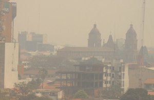 As you can see on yesterday’s Santa Cruz city photo; smoke threatens our health, it damages the environment and is a cause of accidents (an Aerocon flight to Trinidad is still missing, search was impaired because of the smoke). Yesterday, 34 out of 36 airports in intermediate cities have been closed, until weather conditions improve. Hope for wind and rain to clear the skies and put out illegal fires are of main concern to society. There are places where visibility is reduced to 200 meters ahead.