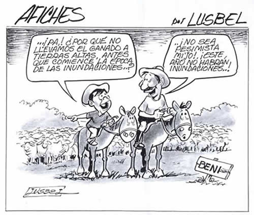 This cartoon is from El Diario (9/22/11), Beni is the department who “receives” most of the rain waters from the highlands and valleys of Bolivia. Every year there is flooding and cattle and housing is lost.