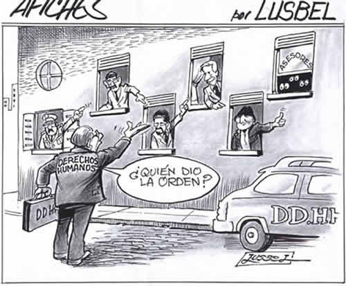 This cartoon is from El Diario, November 29, 2011. The brutal police aggression to the TIPNIS marchers goes still unpunished. Human Rights keeps questioning who did the order for such terrible beating; the government finger points everywhere and there are still no clear signs of finding the guilty parties. Human Rights issued a report, absolving/not mentioning current president’s role in this unfortunate incident; and former and existing government officials, including advisors (upper right window) do not provide, nor do they accept their responsibilities. The more this issue remains unpunished, the worse for current government. Bolivian society and worldwide stakeholders are expecting for the truth to appear.