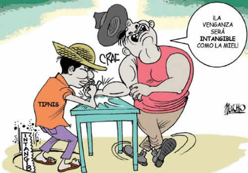 This cartoon is from La Prensa, November 29 2011. It portrays a skinny TIPNIS person defeating a strong, big coca-grower / multi-cultural person, who is saying: “revenge will be as intangible as honey.” The term intangibility that skilfully the government managed to include in the short law, has already began to cause damage. Eco-tourism and some controlled logging inside the TIPNIS, with environmental permits, have been voided, as the government decided to interpret intangibility as doing nothing. When, the indigenous people and the national park were only trying to protect the TIPNIS from a road that intended to cut it by half.