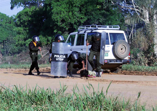 El Deber had a similar coverage, you can read the whole Spanish article in the link below. This ia a picture of police members arresting one of the peaceful TIPNIS marchers on their way to La Paz, it was a 66 day ordeal and the reason for Llorenti’s dismissal from public office and expulsion from the Bolivian Human Rights office, as he was HR’s past-president for Bolivia.