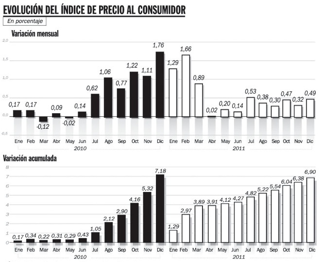 Once the index of prices to the consumer (CPI and IPC in Spanish) – the thermometer that measures inflation–closed in 2011 at 6.90% (by 2010 was 7.18 per cent); from the COB point of view, this will not be the indicator to negotiate the increase in the wages.