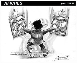 This cartoon is from El Diario, March 18, 2012. It shows the crude and sad reality. When he assumed the Bolivian Presidency, he kept his functions as the coca grower leader of the six federations of coca in the Chapare.