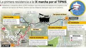 Nolvani explained that “the main theme (of the blockade) is supporting the construction of the Villa Tunari-San Ignacio de Moxos and to prevent the 9th March from happening”. When consulted if San Ignacio de Moxos should become a point for the start of dialogue between the Government and indigenous leadership, said: “that is what we want, that San Ignacio be the seat of the dialogue”. [outrageous and cynical, after threats and blockades, they want to be the place where negotiation takes place? too much for objectivity…]