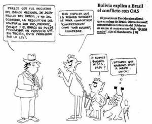 The newspaper headline reads: “Bolivia explains Brazil about the conflict with OAS”