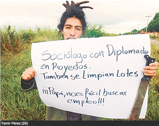 A few weeks ago they paid me Bs 200 for clearing a large field. I think that I and my generation, even more if we have invested time in study, we deserve better. The more I got paid, I received Bs 1,400 per month, without social security. That was two years ago.