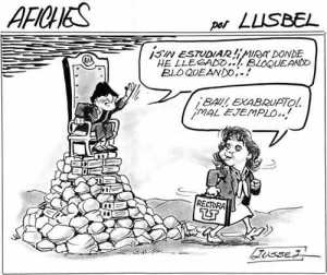 Current president precariously sitting on top of his “power” saying: “without studying! look where I arrived..! blocking, blockading..!”