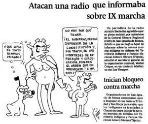 Press news: “A radio that reported about the 9th march was attacked” and “start blockade against the protest-walk”