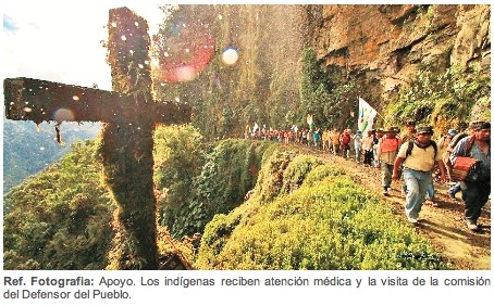 Visit and moral support. The indigenous column, departed from the town of Yolosa towards Sacramento, 18 kilometers away from where the camp was.