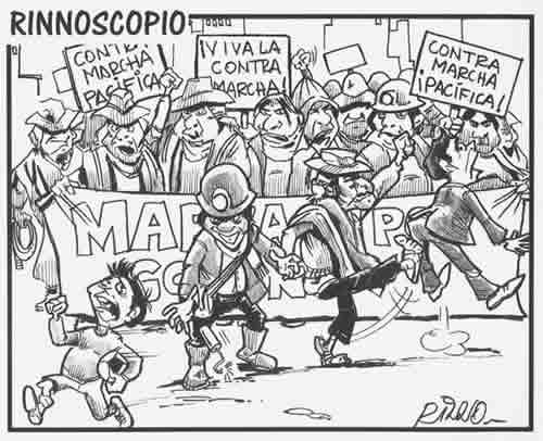 Despite saying they were peaceful, TV and photos recorded the violence of the groups who were controlled by current government to counter attack the TIPNIS arrival.