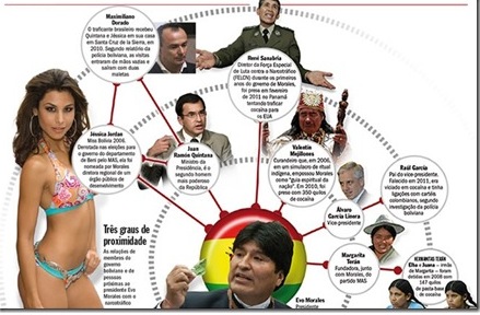 Que podemos esperar de este nuestro gobierno, si nuestro excelentísimo presidente del Estado Plurinacional de Bolivia, es también presidente de las seis (no una) seis, confederaciones (que son el total) de productores de hoja de coca del Chapare, y que la misma va a parar al narcotrafico, entonces la cosa viene por hay, no hay que rasgarnos las vestiduras diciendo que es una afrenta al país, lo que sucede es tan claro como cuando García Meza gobernaba el país y en Estados Unidos tildaron al ministro Arce Gomez, como el ministro de la cocaína, y que paso, el gobierno de aquel entonces también zapateo y lloriqueo exigiendo rectificar la afrenta, pero el tiempo se encargo de dar la razón a los gringos y en este caso sera también el tiempo el que dará la razón a la revista Veja, cuando este acertado gobierno ponga los pies en polvorosa.