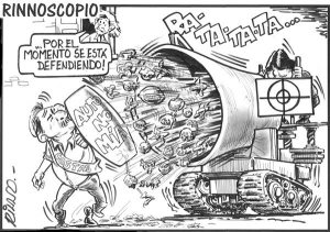 So, there are two president’s for the indigenous groups now and the cartoon shows the infamous TIPNIS road that will cut in half our National Park, the indigenous groups and their territories.