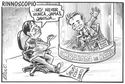 Foreign Affairs Minister says “no, never” the safe-conduct is on the floor and Senator Roger Pinto is inside the Brazilian Embassy, over 52 days… and counting.