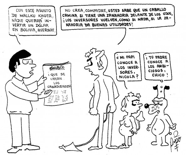 The following news from El Deber [using government’s official site ABI] and many cartoons from Bolivian press, reflect an undisputed reality: we can scare away the most loyal, fiercest investor, and so all needed employment for Bolivian households.