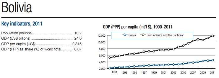 Here some more data, please note that on the graph to the right, the further away from the center is the better for any country; Bolivia remains inside the 1 to 2 economies in transition category…