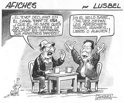 person A: “.. the ‘Evo’ declared at ‘CNN” from USA… that he does not know who ordered the ‘beating’ in Chaparina, nor do his ministers!…”