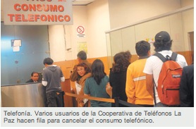 The legislation orders that concluded that deadline, will be cutting service for nonpayment. Manager general of the cooperative phone service in La Paz (Cotel), Victor Estrada, reported yesterday to La Razon, that the company will apply the standard issued by the Executive [government].