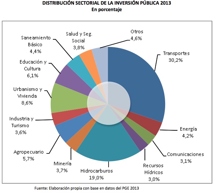 – The investment of the extractive sectors – like hydrocarbons and ores – is more than double when compared with productive investment related with diversification and employment generation, like the Agriculture, Industry and Tourism sectors, that altogether, just receive 9.3% of the total. Investment allocation on productive sectors reveals an “extractive” preference, more than an exchange of the productive matrix.