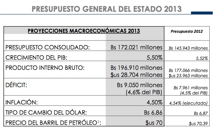 The General Budget of the State for year 2013, presents an increase on fiscal revenues, but expenses are also increased. At the Central Level, it is observed a deficit situation and the use of resources for the Sovereign Bonds (debt) to cover the expenses of the General Treasury of the Nation (TGN).