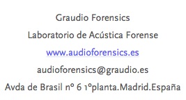 The technical report has been made by Miguel Angel de la Torre Guijarro, Graudio Forensics’ technician, an Spanish company specialized in audio engineering and electronic testing for applications in forensic acoustics, collaborates with consulting firms, law firms and companies in private research, to carry out analysis, reports and expert opinions. Among its ranks, Graudio Forensics has a multidisciplinary staff composed of different professional profiles of forensic acoustics (linguists, phonologists, engineers and audio technical specialists).