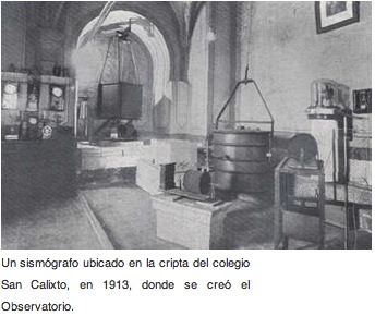 Its creation in 1913, was a milestone. It was a momentous shift from knowledge about the coming land of stories and reports of the colony to a scientific field; the leap was made possible when the first Seismometer was installed in the ancient crypt of the Church of San Calixto College, already a century ago.