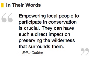 Erika Cuéllar works to protect the wild environment of South America’s Gran Chaco region by training local people as parabiologists armed with professional scientific conservation skills. She co-coordinates the Bolivian Committee for the Species Survival Commission of the IUCN, and is a 2012 recipient of the Rolex Award for Enterprise.
