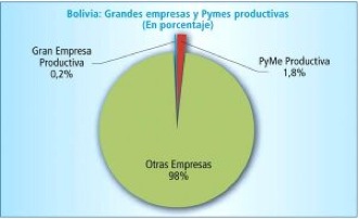 In Bolivia, two of every 1,000 companies are large and dedicated to the productive sector and two of every 100 companies are small and medium productive enterprises (SMEs), according to the report of the Ministry of productive development and plural economy, based on data from INE, broadcast on the “economic table” of the National Chamber of Industries.