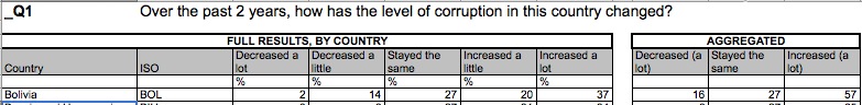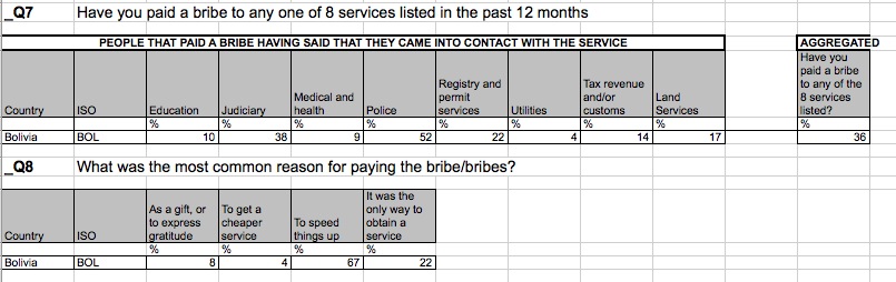FOR BOLIVIA: From the 2013 Global Corruption Barometer by Transparency International: