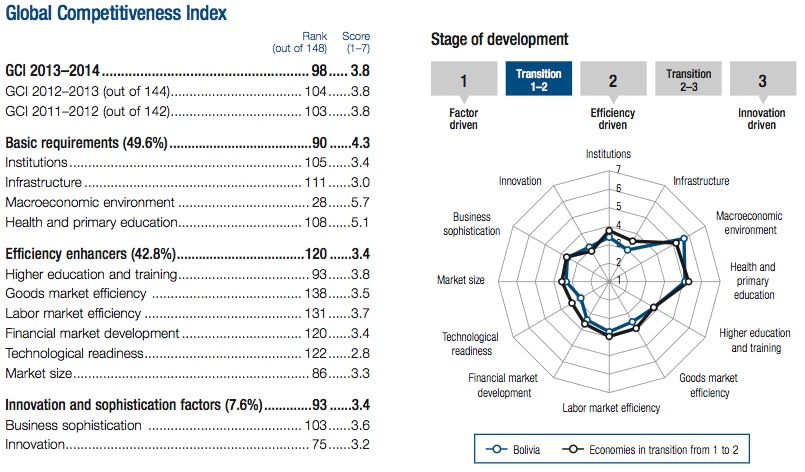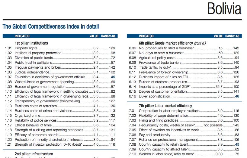 Bolivia is still among the least competitive countries, according to the WEF