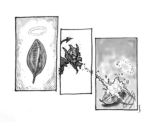 Despite current president’s remarks with international media, that he is a campesino leader… he neglects to recognize at those fora that he is the supreme leader of the coca growers of the Chapare, illegal coca by the way, which ends in the narcotraffick. This cartoon shows how these government portrays the coca as being “saint” while cocaine is evil’s drug; a drug which is impacting negatively on Bolivian and foreign citizens as well.