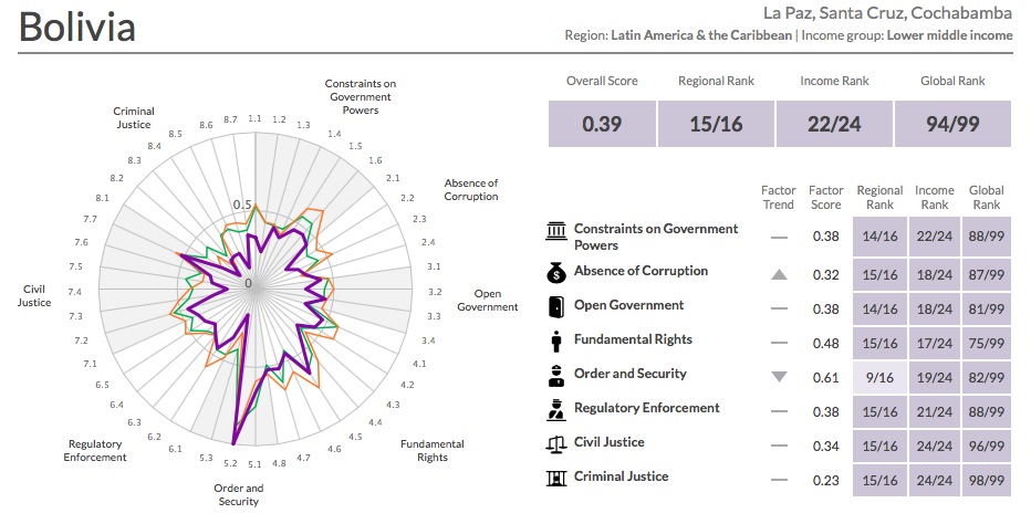 Lets take a look at the Rule of Law Index 2014 for Bolivia: