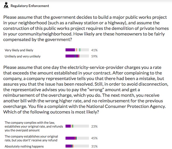 The WJP Rule of Law Index® 2014 indicators are based on more than 100,000 household and expert surveys worldwide. Below are a selection of sample questions taken from household surveys (factors 1 to 6) and expert surveys (factors 7 and 8) for Bolivia that help determine its factor and sub-factor scoring.