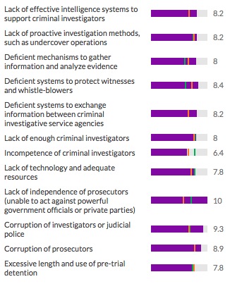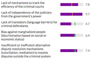 Grave challenges were also found: Latin American countries struggle the most with violence, corruption and ineffective justice. Crime rates are the highest in the world and the use of violence to resolve personal grievances is widespread. The region’s criminal justice systems are, on average, the least efficient in the world. Judicial delays and ineffective enforcement of civil justice are widespread. Corruption and impunity remain major challenges, particularly among legislative bodies.