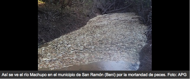 A committee of the Governorate of Beni visited the town of San Ramon, Province Mamore, Beni and sampled the Machupo River, where they saw thousands of dead fish floating for several days. Experts say the lack of oxygen is causing the plague.