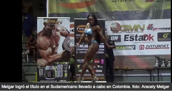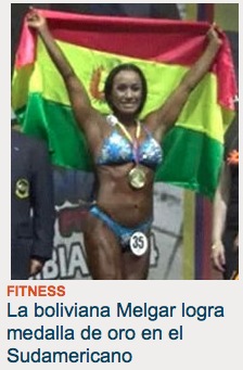 Santa Cruz Aracely Melgar won the gold medal at the XL South American Championship 2014 Bodybuilding, Fitness Choreography category. The competition this weekend [Aug 30th] was held in Bogota (Colombia).