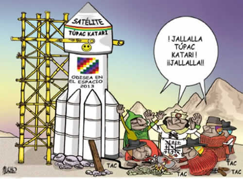 While Bolivia has been, for the last nine years, under an unprecedented economic boom, we have suffered the worst possible government. Leaded by a coca grower leader who obeys/takes care of the illegal coca crop growers of the Chapare. There has been wastefulness of around $120 BILLION dollars and this is a tiny $300 million dollar question: where the hell is the satellite that even with weeping crocodile tears, is NO where to be found or used… what happened????