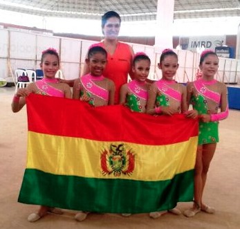 The Bolivian delegation secured bronze in the category, team 9-10 years, the South American Gymnastics Championship which is carried out in Colombia. In this group that achieved the podium, consisted of Camila Alpire, Rafaela Delgadillo, Iris Salazar, Aranza Anzoategui and Natalia Ávila. While Francesa Genuzio started off in fifth on the ring test and sixth on free hands. Meanwhile Antonella Genuzio today [10/19/2014] seeks gold in hoops.