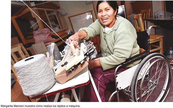 The situation changed when he decided to play basketball with others like him in wheelchairs; a friend told him he could learn machine weaving, while training met Aruquipa, who taught him to knit.