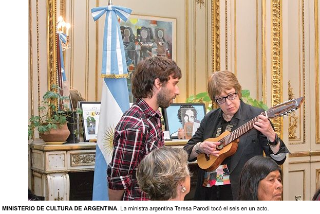 At the official ceremony, presided over by Minister of State for Culture, Teresa Parodi, Argentine craftsman presented not the electric charango, but the six [el seis], who had finished building.