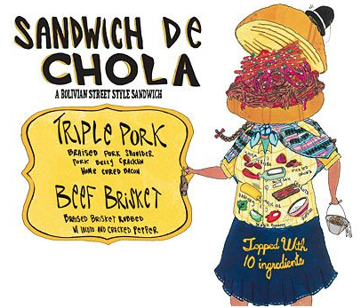An ice cream huminta-flavored and another with api savor, one salteña with Cliza name, made with quinoa and smoked mushrooms and other spicy chicken sandwich and chola sandwich with vinegary red onions and carrots are some of the The most popular foods in Bolivian Llama Party.