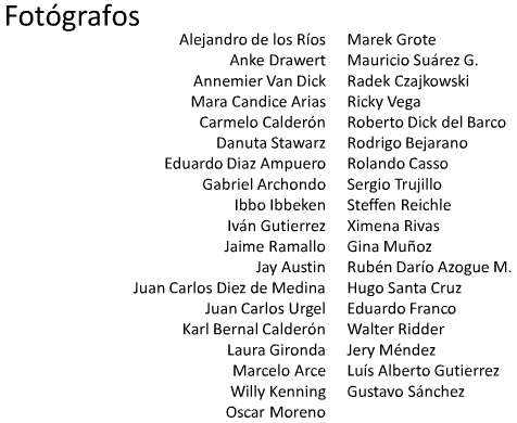 The photographers who made it possible are: