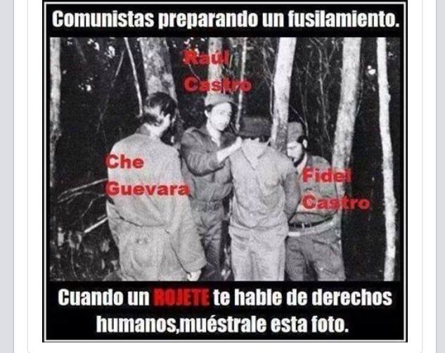 So that we are clear who Guevara was. Lets see this picture who portrays the “leaders” of the so-called revolution and their respect to human life… there are also pictures where these individuals are giving speeches on socialism, while wearing expensive Rolex watches… so you know who those assassins and demagogue people really are. The picture shows those criminals preparing to shoot a political “enemy”.