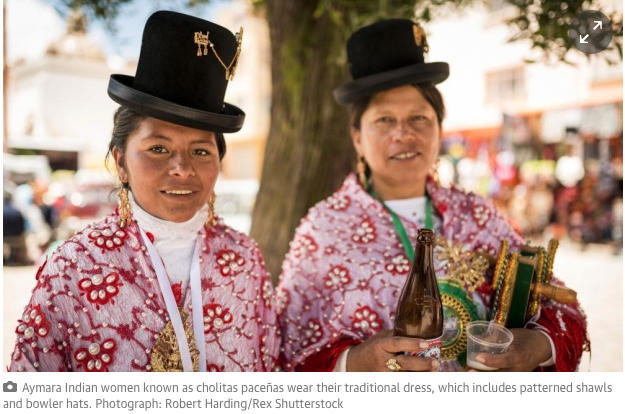 They are dressed in the traditional costume of the Aymara Indian women of La Paz – known as cholitas paceñas – an outfit which once which denoted membership of a marginalised and downtrodden section of Bolivian society, but now reflects the growing confidence and spending power of the country’s emergent indigenous middle class.