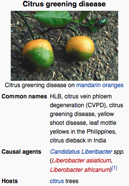 The Huanglongbing [news had it as: Huanglongbind] disease, better known as HLB, became a real threat to citrus production in the country, because it has already affected production in Argentina, Brazil and Paraguay.