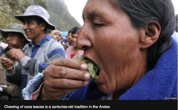 This news appeared prior to Pope Francis visit to Bolivia… as I hoped, he DID NOT chew anything! He knows better than that… anyway I thought it would be nice to publish it after he left my beloved Bolivia!