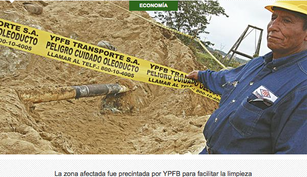 I remember when there were two barrels of oil that were damped during the construction of the pipeline to Cuiaba, near San Matias… the press, the NGOs, the communities and leaders of all sorts, were after GasOriente Boliviano… looking after money! Now, that this was an actual rupture of the pipeline, nothing happens??!!