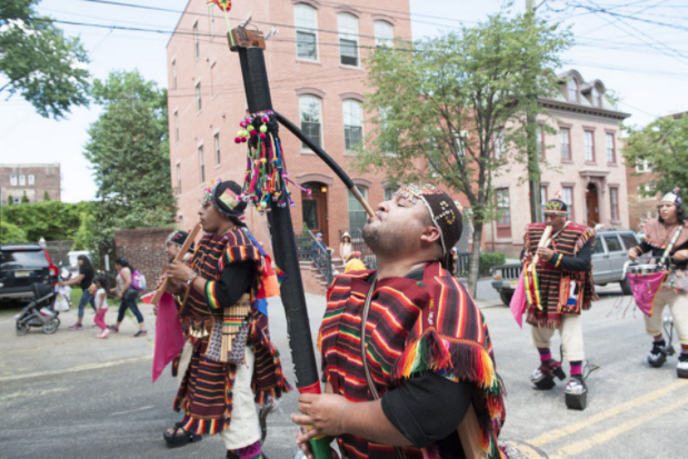 “I want to show my kids and future generations what to do in the parade,” said William Roca from Elizabeth, who was dressed in full traditional garb.