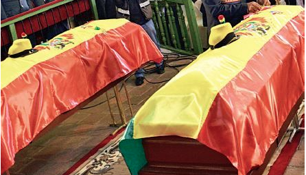 Army troops entered two coffins to the House of Liberty where national authorities paid them homage. President Morales made the posthumous delivery -maximum Andean Condor distinction conferred by-state, among other distinctions.